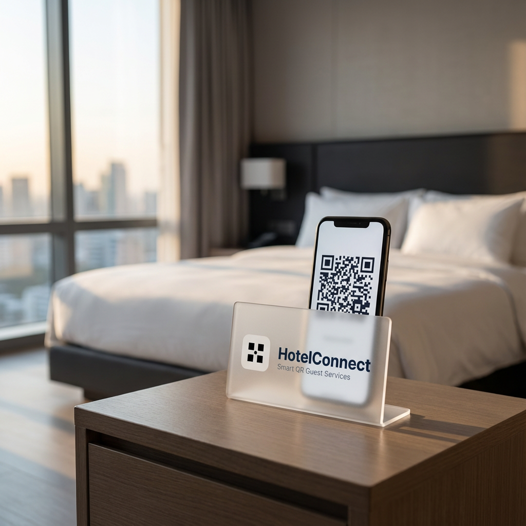 Unique QR codes for each room providing instant access to hotel information, services, and local recommendations.